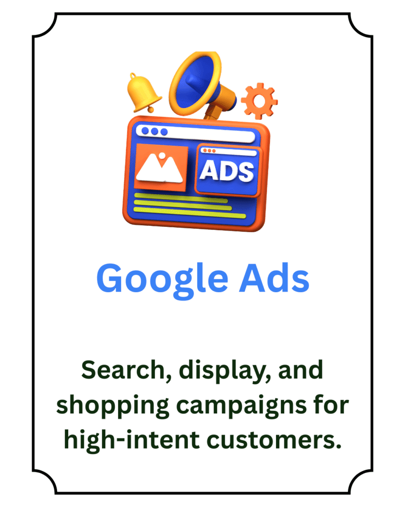 We don’t just run ads — we build ROI-focused performance marketing strategies that deliver real results. Our Google Ads campaigns, including PPC advertising, search ads, and remarketing, are designed to target the right audience, reduce wasted ad spend, and generate high-quality leads that convert into customers.